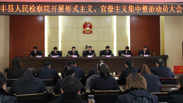 为认真贯彻落实习近平总书记关于坚决整治形式主义、官僚主义的一系列重要指示精神,深入推进作风建设,12月12日,丰县人民检察院召开开展形式主义、官僚主义集中整治动员大会。会议由党组成员、副检察长孙博主持,全体班子成员、县纪委县监委派驻第十一组组长及全院干警参加了会议。